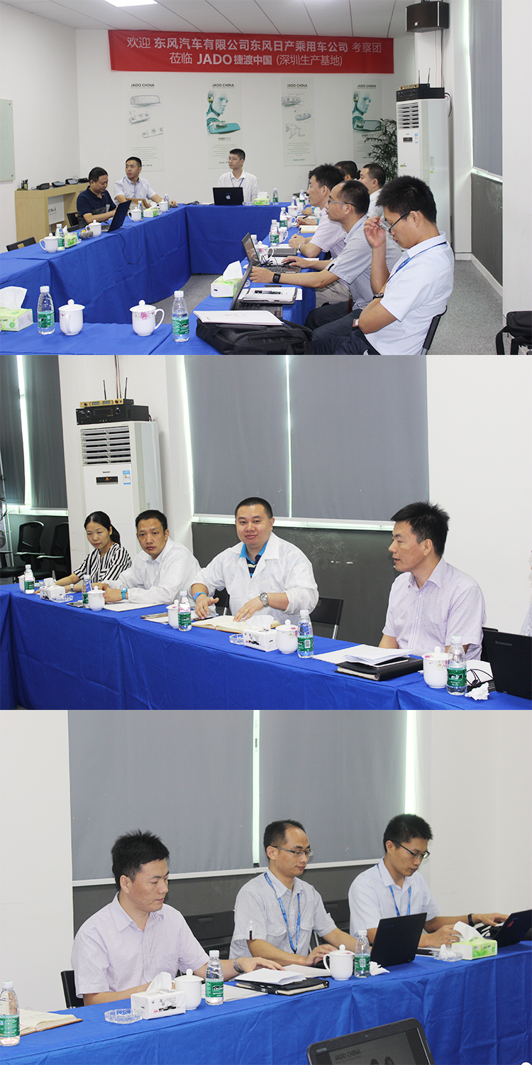 初步審核后,9月8日,東風汽車有限公司、東風日產(chǎn)乘用車公司研發(fā)部門、采購部門、發(fā)貨部門和品質(zhì)部門組成的考察團一行蒞臨JADO捷渡中國深圳生產(chǎn)基地進行全面實地考察。