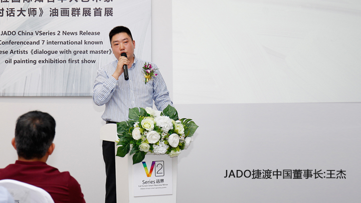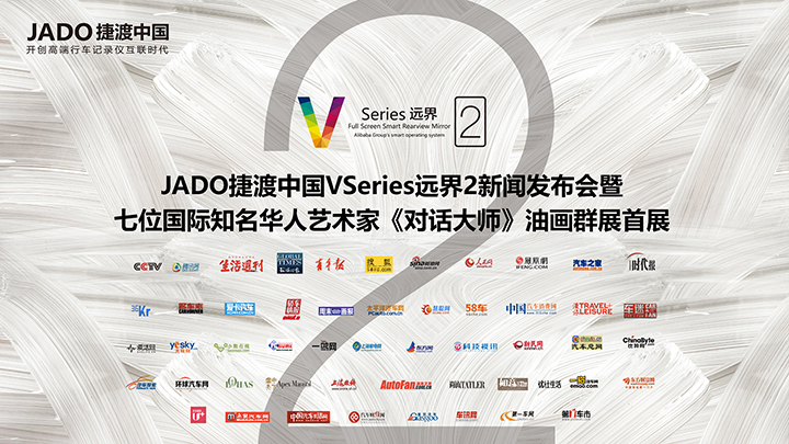 2016年10月14日下午,JADO捷渡中國(guó)攜手7位全球杰出華人藝術(shù)家在上海外灘半島美術(shù)館舉行“互聯(lián)網(wǎng)+全屏智能后視鏡‘VSeries遠(yuǎn)界2’新聞發(fā)布會(huì)暨7位全球杰出華人藝術(shù)家《對(duì)話大師》油畫群展首展”。