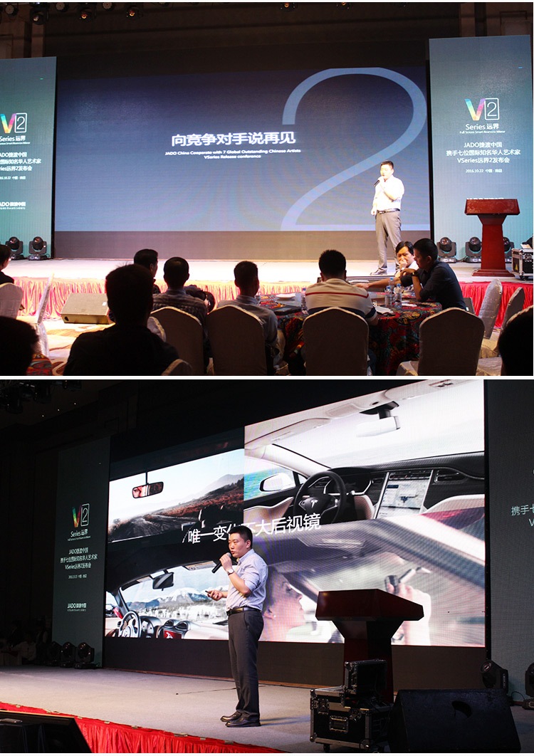 JADO捷渡中國董事長王杰先生上臺致辭,重點為大家講述了“為什么要說再見”以及“VSeries遠界2的功能介紹”。