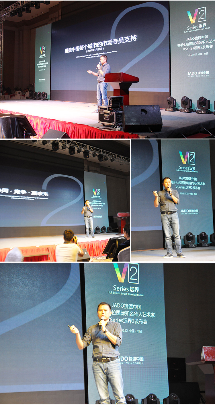 2016年10月22日,以 “再見,過去;你好,遠界 Bye yesterday, Hello VSeries” 為主題的“JADO捷渡中國攜手七位國際知名華人藝術家VSeries遠界2(中國• 江西)發(fā)布會”在南昌凱美開元名都大酒店完美落幕。本次活動由JADO捷渡中國江西省戰(zhàn)略合作伙伴江西舒美汽車用品實業(yè)有限公司主辦。