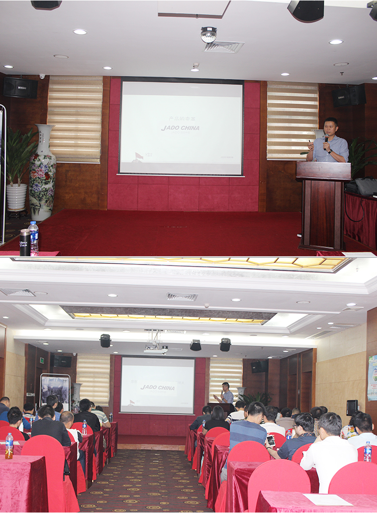 2017年4月27日,主題為“合力共贏,一戰(zhàn)登頂”的JADO捷渡中國2017華南、華北戰(zhàn)區(qū)決戰(zhàn)終端誓師峰會在中國·深圳民都大酒店隆重舉行。