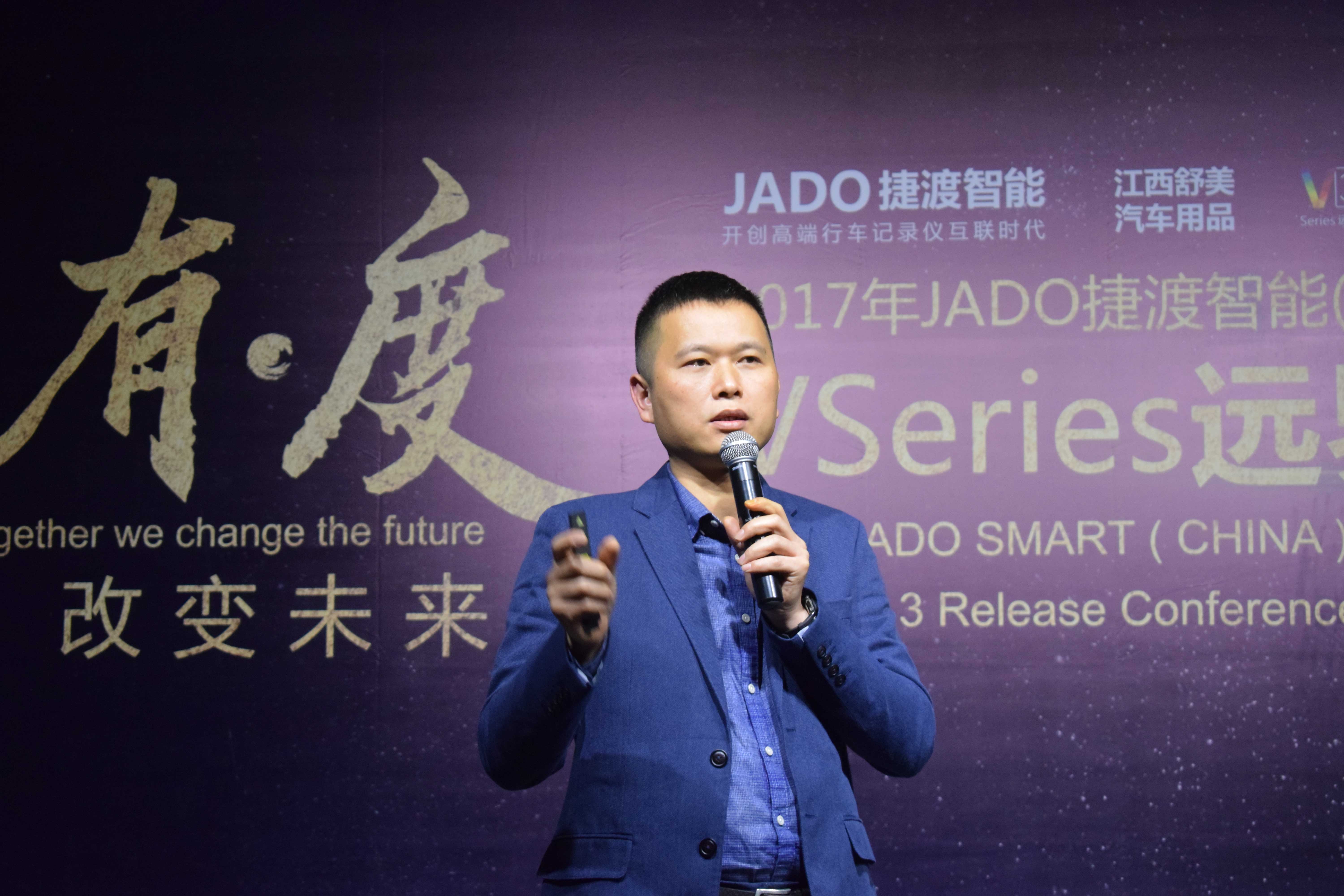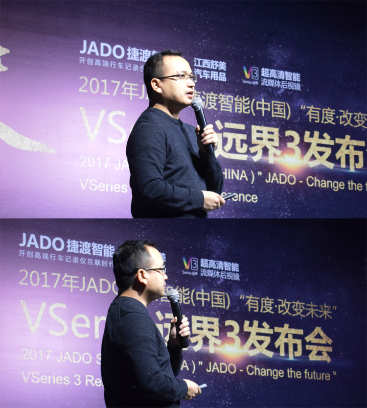 JADO捷渡智能(中國)產(chǎn)品總監(jiān)吳樂明先生上臺致辭,重點為大家闡述了 VSeries遠界系列產(chǎn)品的設(shè)計理念。面對行業(yè)的白熱化競爭,如何從產(chǎn)品端去精準把握市場,進而引領(lǐng)后視鏡未來的廣闊市場。前裝與后裝并存、專業(yè)與智能的完美融合,VSeries遠界3給了大家一個最佳的選擇。