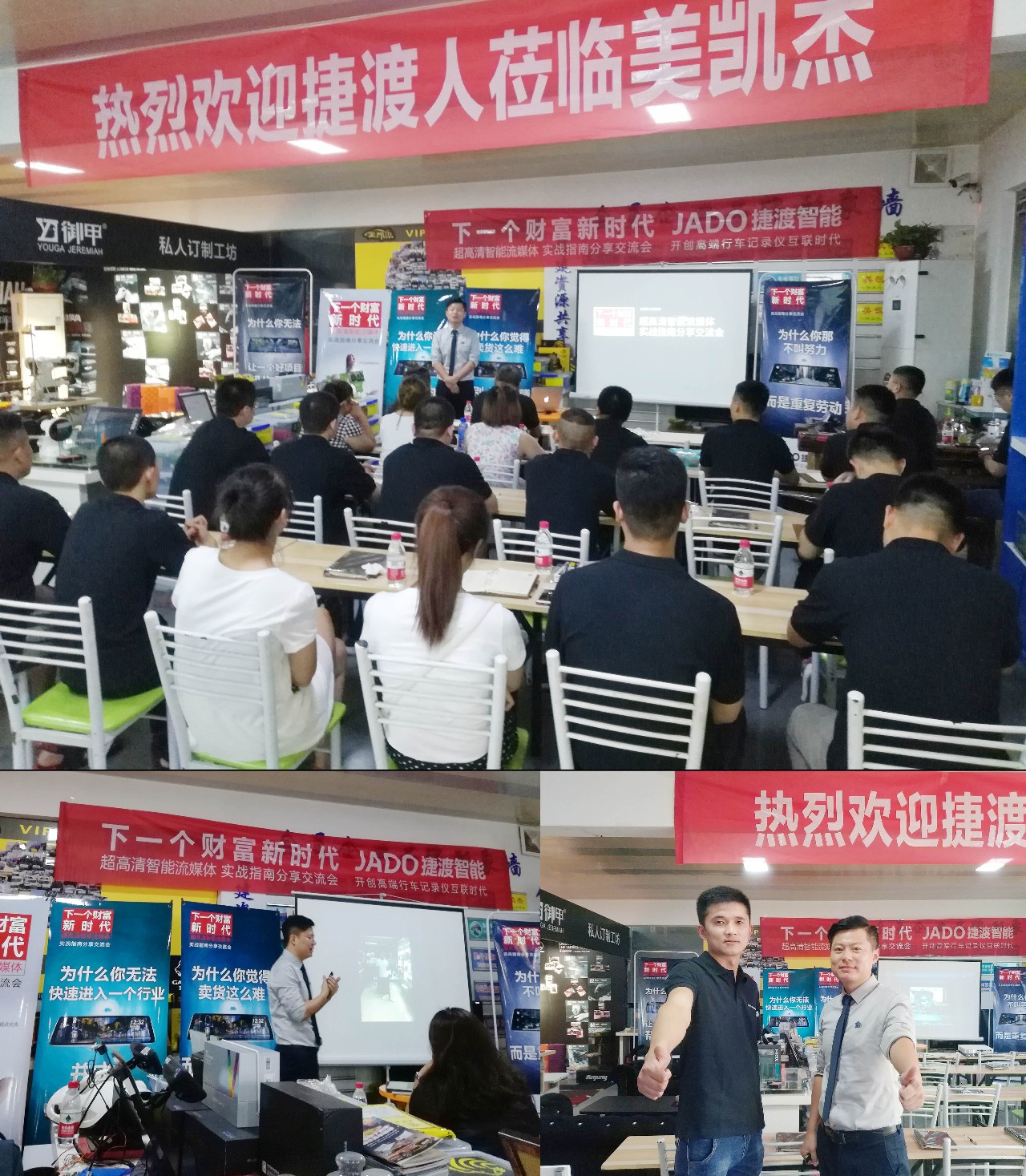 會(huì)中,JADO捷渡智能(中國(guó))戰(zhàn)區(qū)負(fù)責(zé)人杜新先生為大家介紹了流媒體后視鏡,擁有最新的AliOS3.0系統(tǒng),首創(chuàng)全面屏流媒體后視鏡,超高清航天級(jí)夜視,主動(dòng)行車安全系統(tǒng)等。并分享了超高清智能流媒體后視鏡產(chǎn)品的銷售技巧,講解了產(chǎn)品在未來的發(fā)展空間和趨勢(shì)。并通過對(duì)目前全國(guó)一些優(yōu)秀終端店的成功經(jīng)驗(yàn)的總結(jié),以及不同區(qū)域的市場(chǎng)特點(diǎn)的分析,讓現(xiàn)場(chǎng)的運(yùn)營(yíng)商在產(chǎn)品信息、思路拓展以及客戶交流等方面都收獲頗豐。